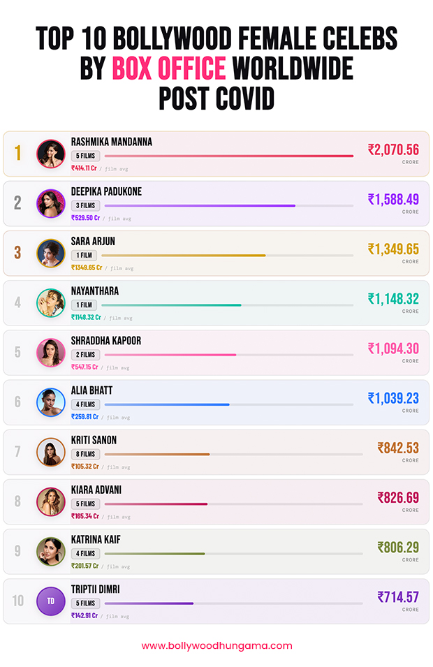 EXCLUSIVE: Top 10 Bollywood female celebs by Post-Covid box office REVEALED: Rashmika Mandanna is the new queen – Kareena Kapoor out, Katrina Kaif falls from no. 1 to no. 9 10 : Bollywood News – Bollywood Hungama