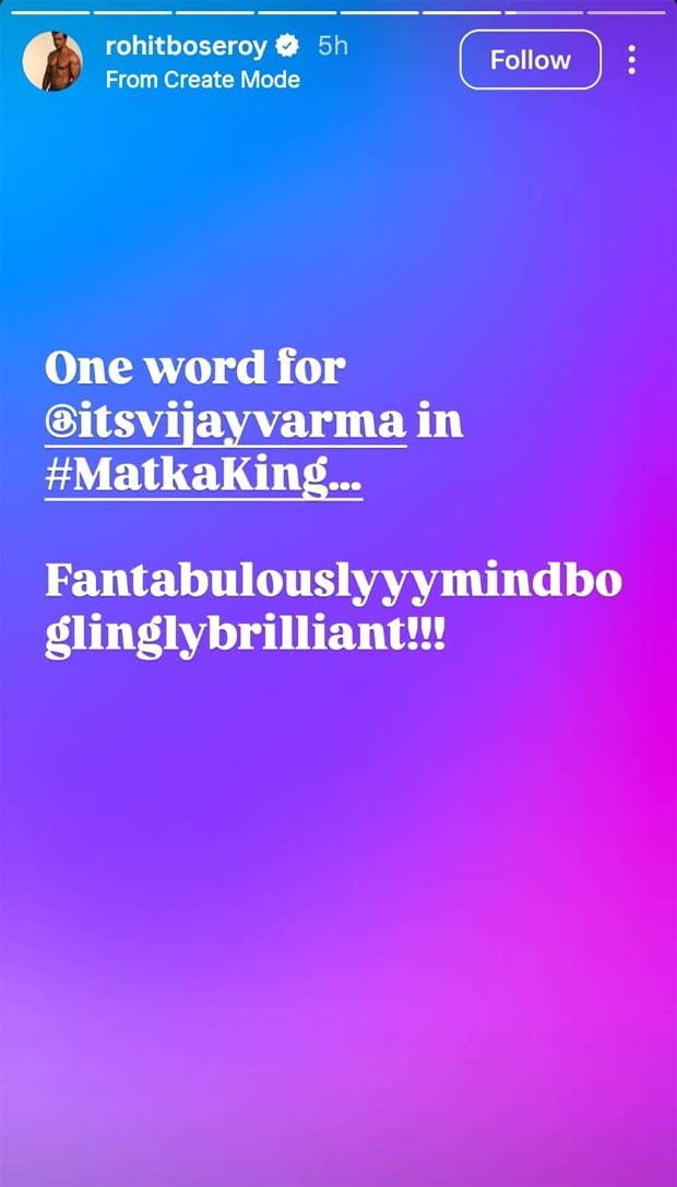 रोहित बोस रॉय ने भी शो की प्रशंसा करते हुए कहा, “#MatkaKing में @itsvijayvarma के लिए एक शब्द – Fantabululouslyyymindboglinglybrilliant!!!”